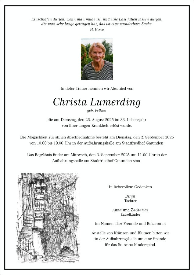 Christa Lumerdinggestorben am 26. August 2025