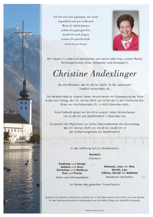 Gerade hab ich noch mit Sabina telefoniert, um einen Termin für Eure Eiserne Hochzeit zu machen, leider war es Euch nicht mehr möglich, dieses Fest gemeinsam zu feiern. Ich wünsche Euch allen von ganzem Herzen alles alles Gute für diese so schwere Zeit des Abschieds. Viel Kraft und den Mut den Blick nach vorne zu richten.