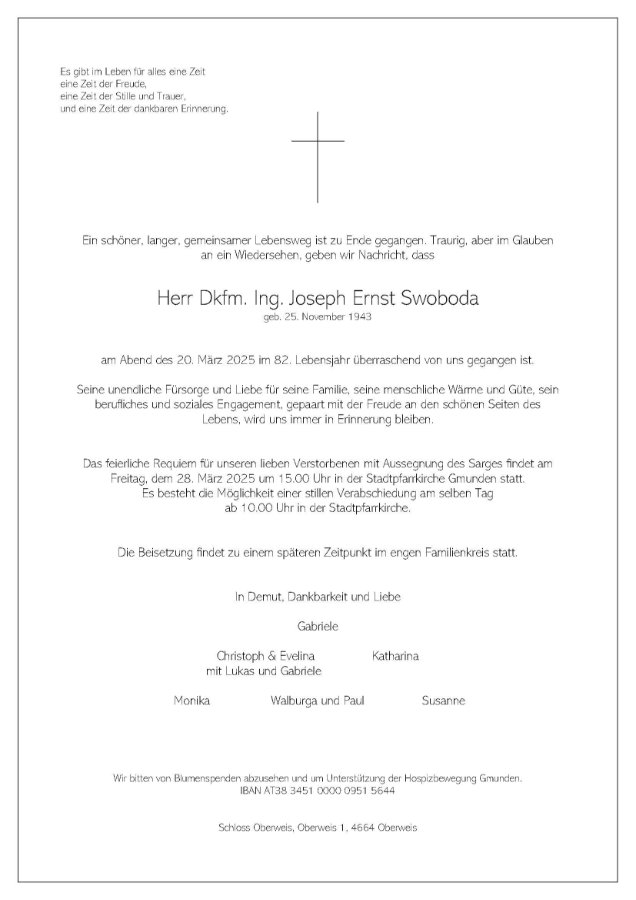 Sehr geehrte Trauerfamilie! Tief betroffen von der erschütternden Nachricht möchten wir unser aufrichtiges Beileid ausdrücken und viel Kraft für die Bewältigung der Trauer wünschen.