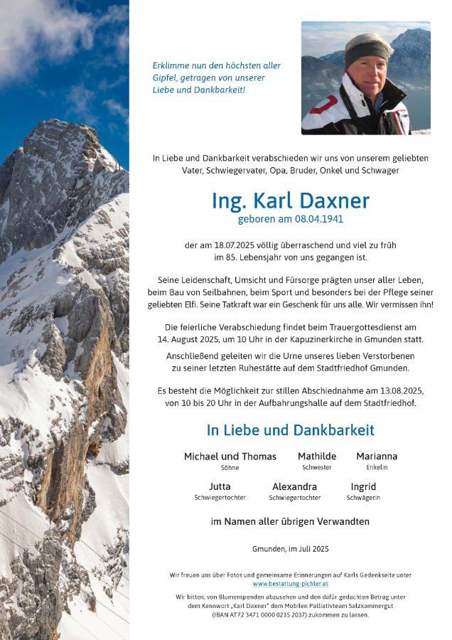 Ing. Karl Daxnergestorben am 18. Juli 2025